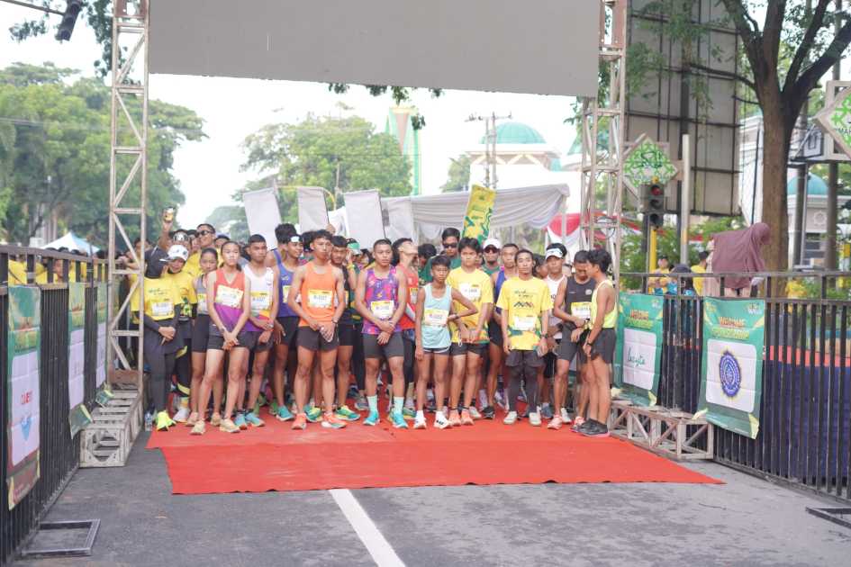 Wakil Wali Kota Metro, Drs. H. Qomaru Zaman, MA, melepas 725 peserta Runniversary Ruang 144 Singing Class Tahun 2025 yang digelar Taman Merdeka Kota Metro, Minggu (12/01/2025).